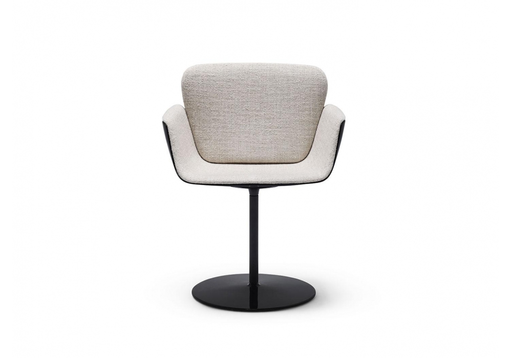 KN06 diseñada por Piero Lissoni para Knol es una silla con base de columna realizada en aluminio pintado de color blanco o negro. Carcasa en fibra de vidrio blanco brillante, negro brillante o totalmente tapizada. Tapicería en tela o piel. Disponible en versión con base fija o giratoria.