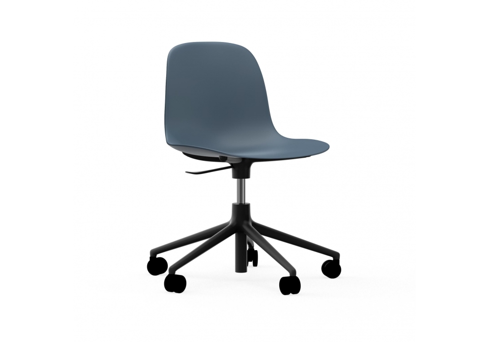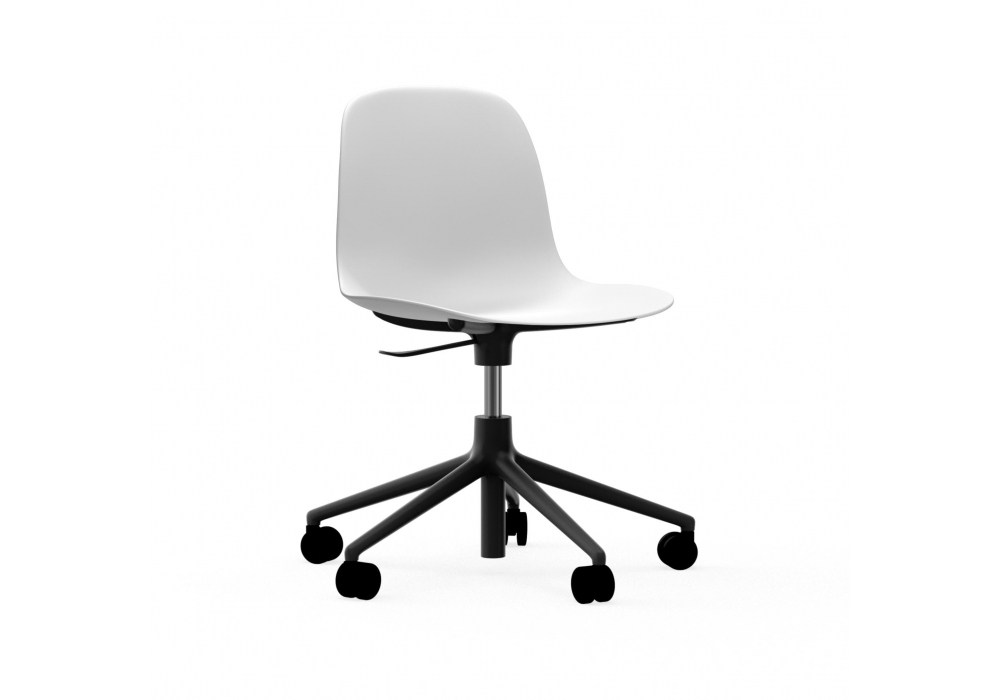 Form, diseñada por Simon Legald para Normann Copenhagen es una silla giratoria, con base en aluminio y asiento en material plástico en diferentes colores. Form está disponible en diferentes modelos y colores con base giratoria.