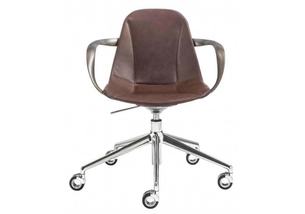 Couture 5 diseñada por Stefano Bigi para Enrico Pellizzoni es una silla giratoria con ruedas, carcasa de aluminio tapizada en diferentes materiales y colores. Disponible en diferentes versiones.