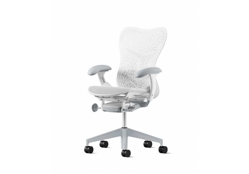 Mirra 2 diseñada por Studio 7.5 para Herman Miller es una silla de oficina disponible en dos versiones con diferentes respaldos, una hecha con el material flexible TriFlex y la otra con el respaldo Butterfly que responde. El asiento sigue cada movimiento, al unísono con el cuerpo. Al sentarse se adapta al cuerpo al instante. Al moverse, el asiento y el respaldo soportan dinámicamente cada movimiento mínimo. Disponible en diferentes acabados.