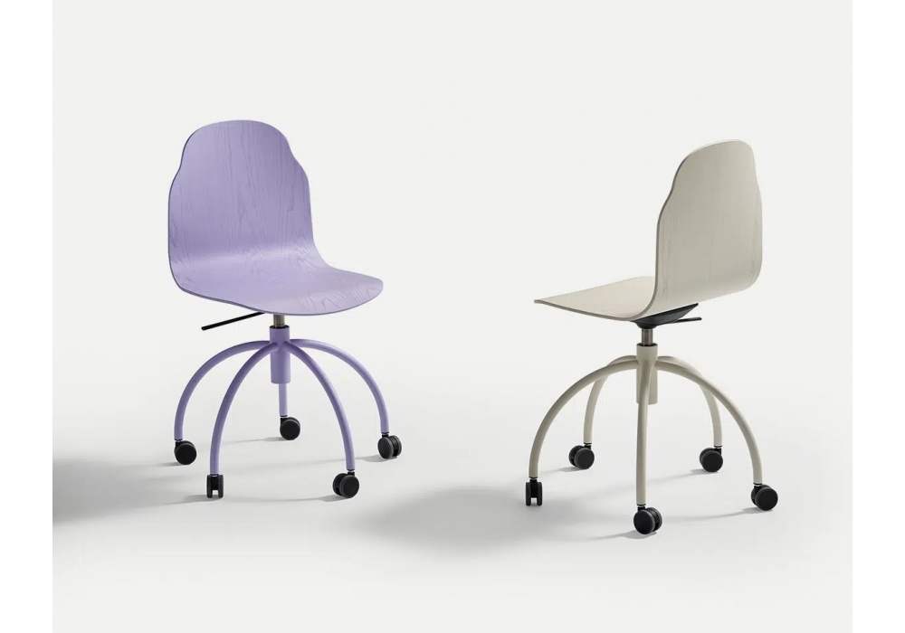 Body diseñada por Sylvain Willenz para Sancal es una silla con ruedas en la base, patas de metal y carcasa de madera. Disponible en diferentes acabados.