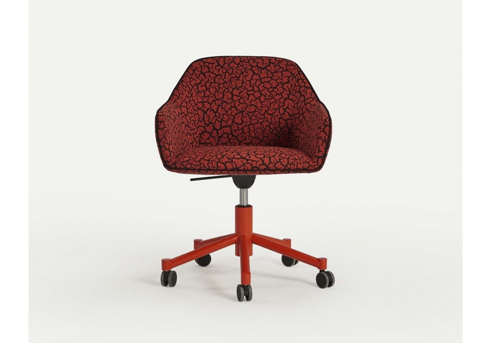 Nido diseñada por Rafa García para Sancal es una silla giratoria con base de metal lacado, asiento acolchado y respaldo tapizado en tejido o piel.