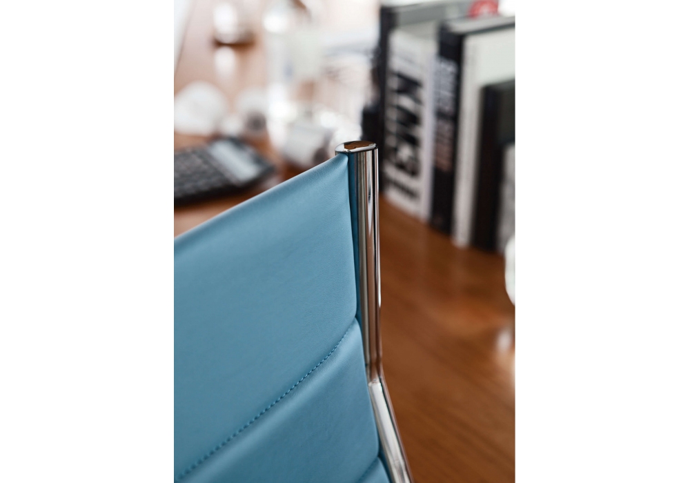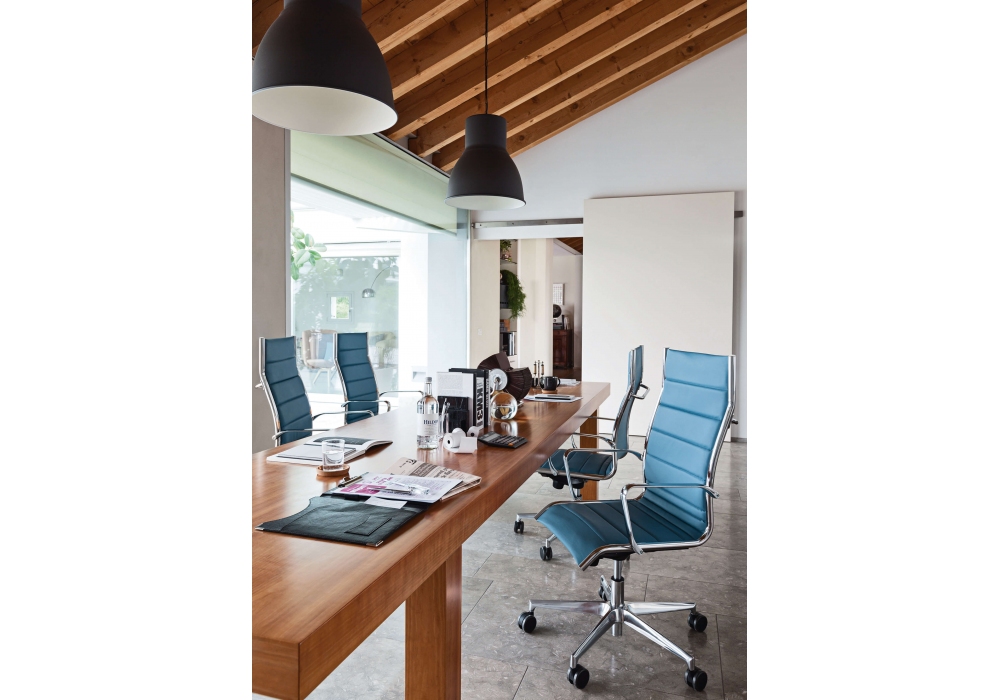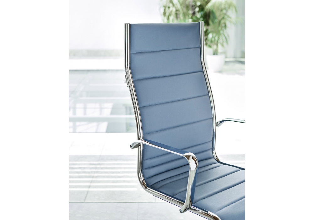 Sky Ten diseñada por R&D Milani es una silla realizada con asiento y respaldo en resina expandida ignífuga, estructura de metal cromado sin tornillos laterales. Base de 5 radios en aluminio pulido o negro. Ruedas negras autofrenantes de serie de Ø 65 mm. Disponible en diferentes acabados y modelos.