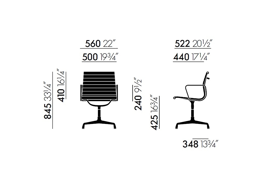 EA 103 by Vitra es una silla diseñada por Charles y Ray Eames.La Aluminium Chair es uno de los diseños de mobiliario más importantes del siglo XX. Charles y Ray Eames la diseñaron originalmente en 1958 para la vivienda privada de un coleccionista de arte de Columbus, Indiana (EE. UU.). Para la construcción de esta silla, los diseñadores abandonaron el principio de la carcasa de asiento y decidieron, en su lugar, tensar una superficie de tela o piel entre dos piezas laterales de aluminio para crear un asiento firme, pero elástico. La Aluminium Chair, con su fino acolchado, se adapta al cuerpo del usuario y resulta extraordinariamente cómoda.