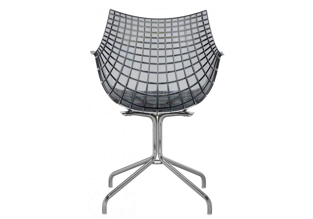 Meridiana diseñada por Christophe Pillet para Driade es una butaca con estructura en acero cromado y carcasa en policarbonato blanco o negro, policarbonato transparente: incoloro o ahumado.