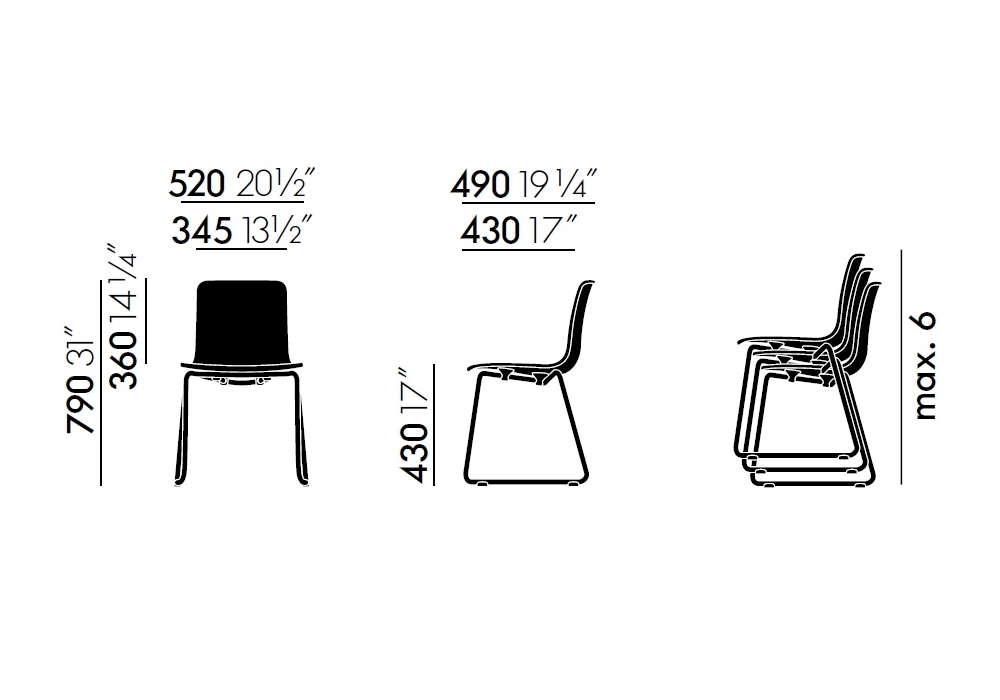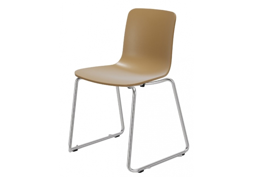 HAL RE Sledge diseñada por Jasper Morrison para Vitra es una silla con base patín en tubo de acero cromado y carcasa en polipropileno reciclado teñido en masa. También disponible con elementos de conexión en fila.