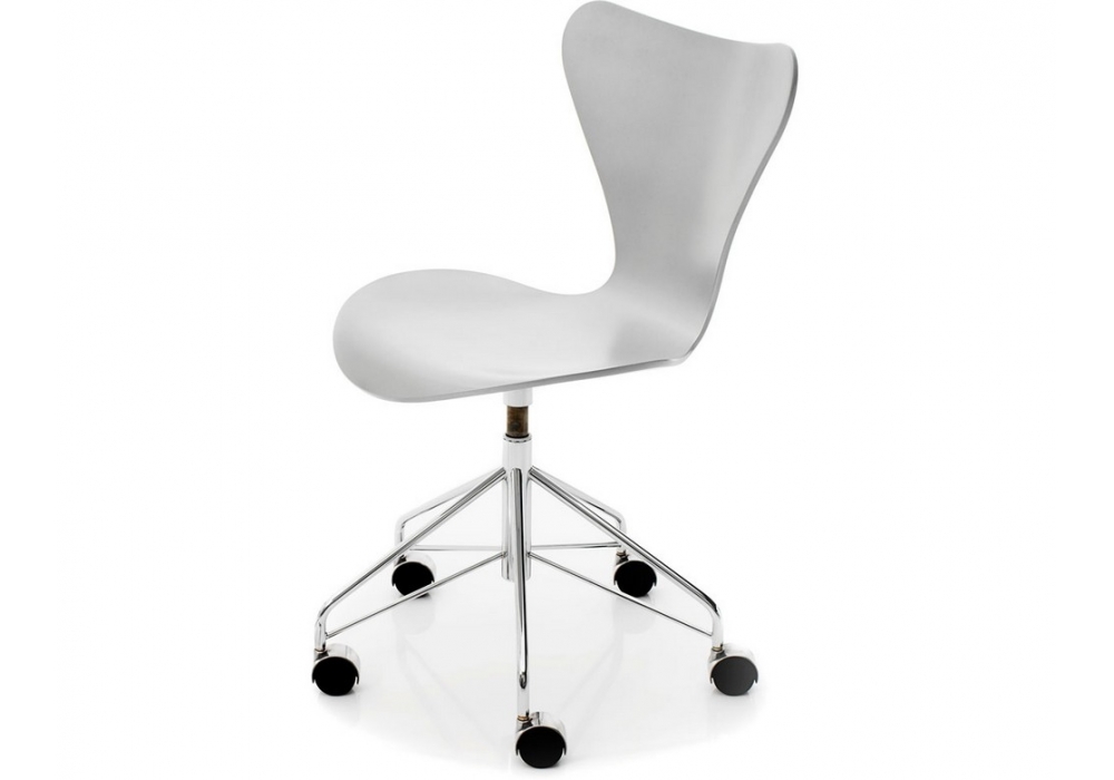 Series 7 diseñada por Arne Jacobsen para Fritz Hansen es una silla giratoria con ruedas realizada con carcasa en madera contrachapada o en fresno lacado o coloreado y base de 5 radios en tubo de acero cromado o pintado en polvo. Disponible en diferentes acabados.