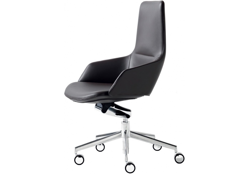 Aston Office Syncro diseñada por Jean-Marie Massaud para Arper, es un sillón confidente con estructura a cinco radios en aluminio brillante, montado sobre ruedas auto frenantes, dotado de mecanismo a gas para regular la altura y de mecanismo syncro. La carcasa de poliuretano está tapizada en piel, ecopiel, tejido.