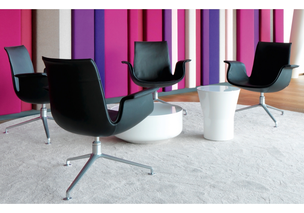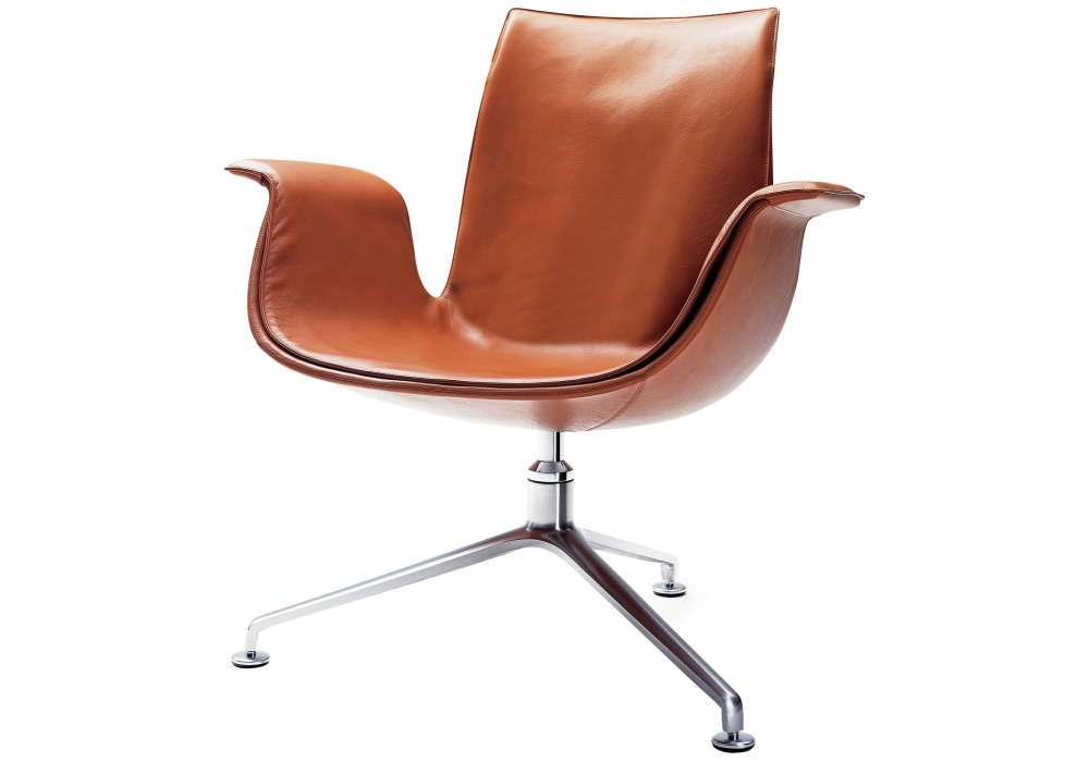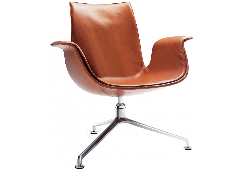 FK Lounge diseñada por Preben Fabricius & Jørgen Kastholm por Walter Knoll es una hermosa butaca con base giratoria de aluminio y revestimiento disponible en diferentes pieles. Deslizadores sintéticos para suelos de piedra y alfombras o deslizadores de fieltro para suelos de madera. FK con su forma única, contornos claros y líneas limpias es un brillante ejemplo de sustancia eficaz.