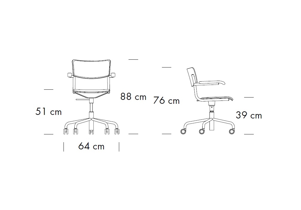 S 43 PVFDR diseñado por Mart Stam para Thonet es un sillón giratorio con reposabrazos, con estructura en tubo de acero cromado o negro. Asiento y respaldo de contrachapado de haya perfilado, acolchado con tapizado de tela, piel o piel de vacuno. Altura ajustable.