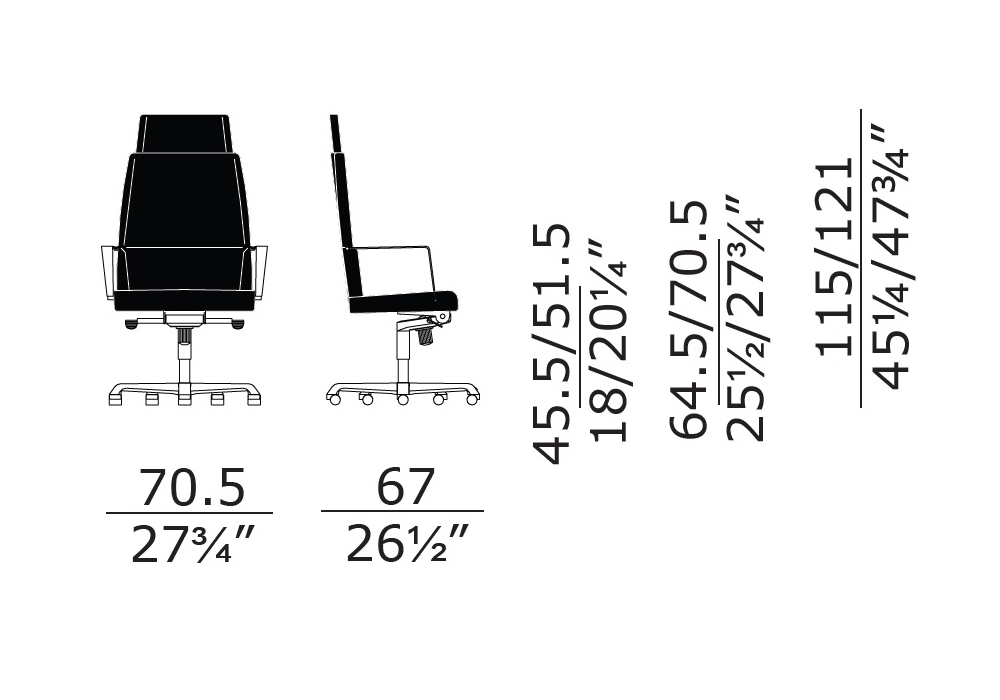 | Altura del reposabrazos | • 64,5/70,5 cm |