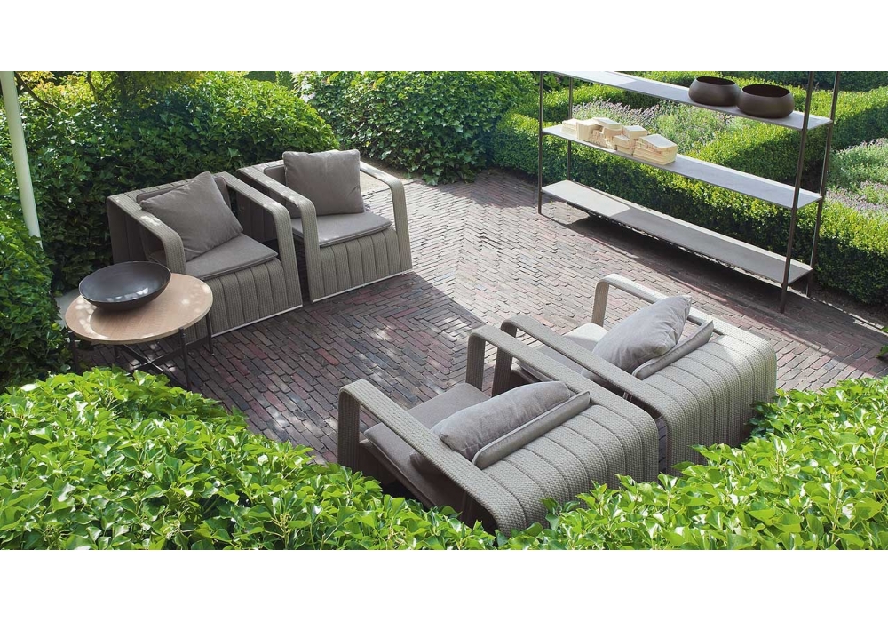 Frame diseñado por Francesco Rota para Paola Lenti es un sillón de exterior disponible en diferentes tipos. Los cojines de la carcasa, el asiento y el respaldo están disponibles en varios tapizados.