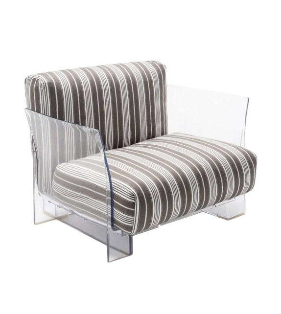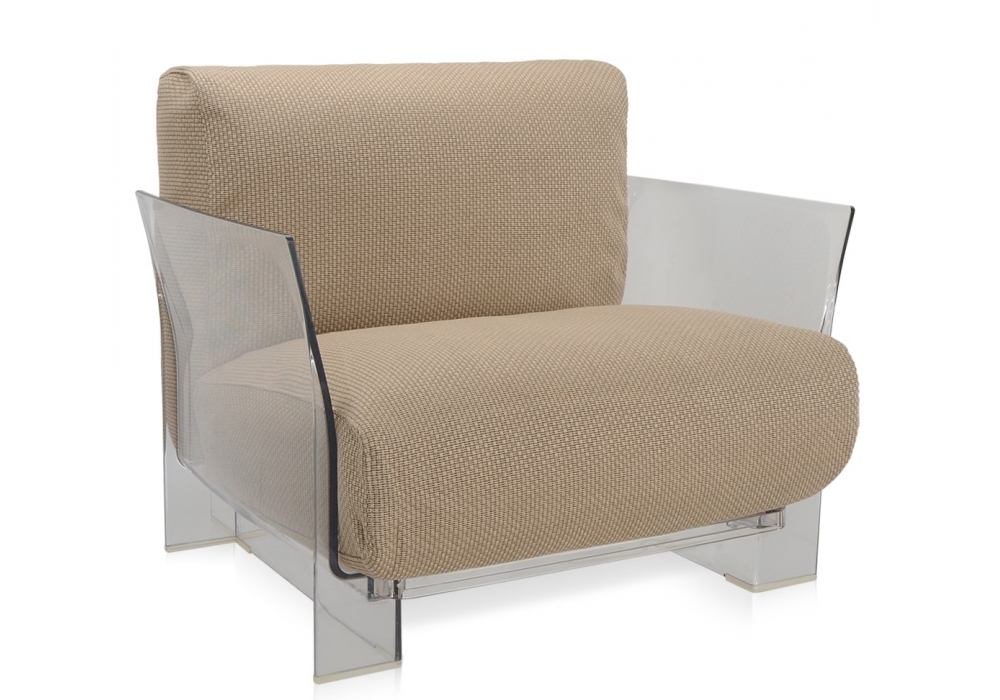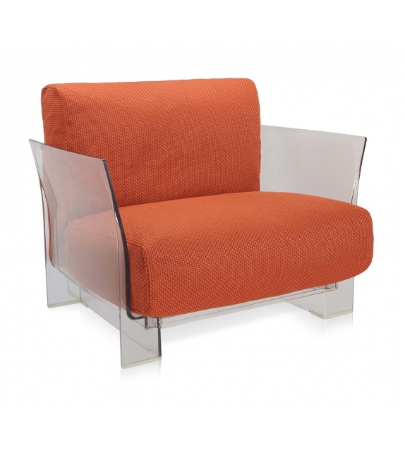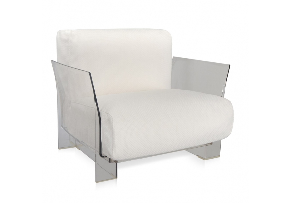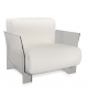 Pop Outdoor diseñada por Piero Lissoni & Carlo Tamborini para Kartell es una butaca realizada con estructura en policarbonato transparente y cojines de asiento y respaldo en espuma de poliuretano. Tapicería exterior desenfundable en tejido.