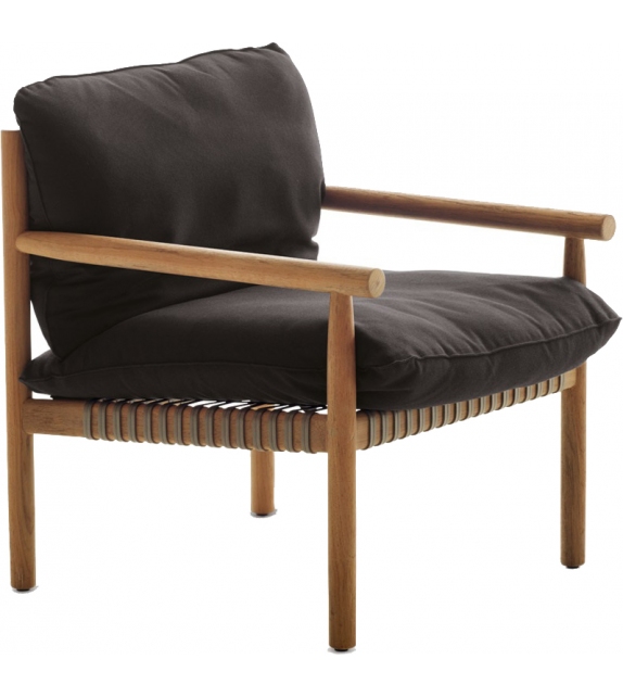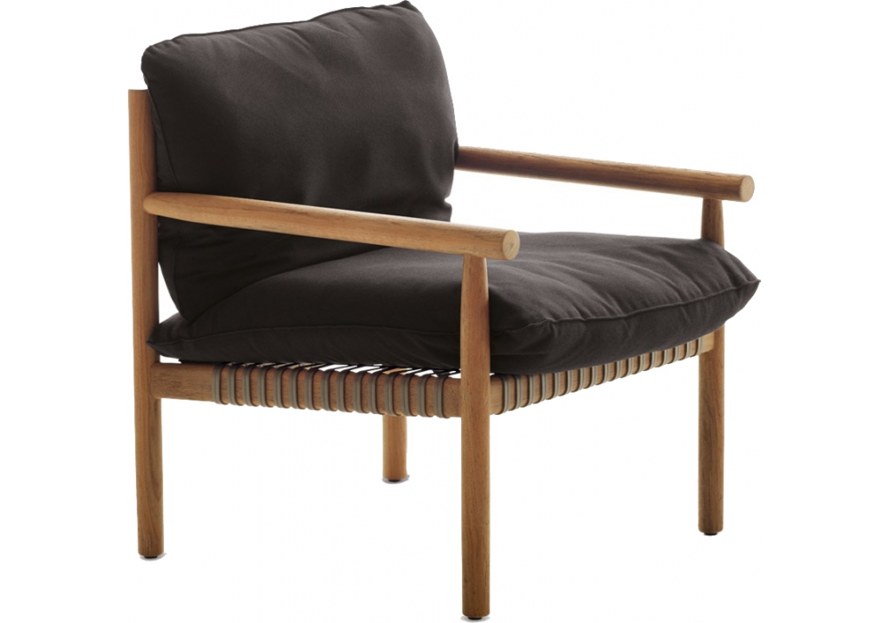 Tibbo diseñado por Edward Barber & Jay Osgerby para Dedon es un sillón hecho de teca de primera calidad. El asiento está hecho de fibra tejida.