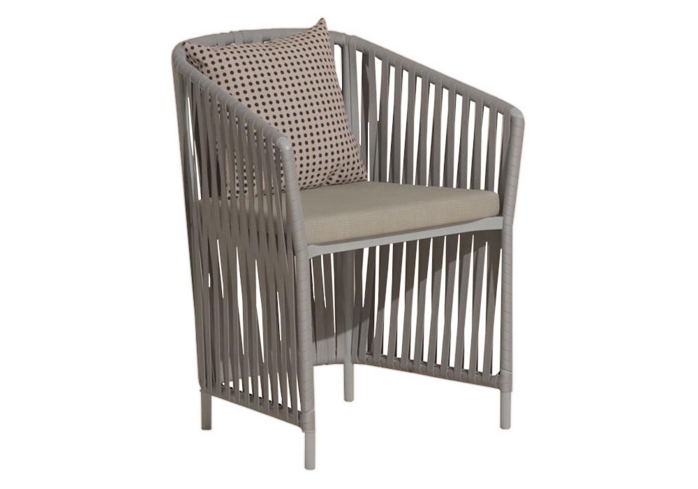 Bitta Lounge diseñado por Rodolfo Dordoni para Kettal es un sillón comedor que se caracteriza por una combinación de estructura en aluminio, carcasa trenzada en cuerda de poliéster y cómodos cojines en materiales perfectamente resistentes a las intemperies.