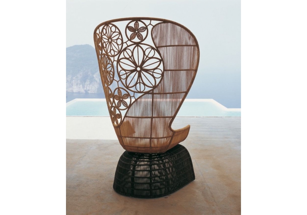 Crinoline C5C diseñada por Patricia Urquiola para B&B Italia Outdoor es una butaca con estructura en aluminio barnizado en polvo poliéster. Base con trenzado en abacá gris. Asiento con trenzado en abacá natural.. Puntales en material termoplástico. Cojín asiento con revestimiento en tejido.