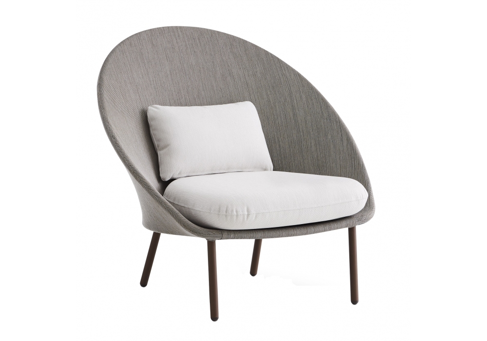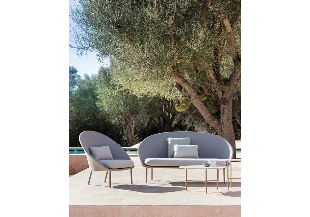 Twins diseñado por Mut Design para Expormim es un sillón bajo realizado con tubos de aluminio de alta resistencia y tapicería en tejido adecuada para uso en exteriores. Disponible en diferentes acabados.