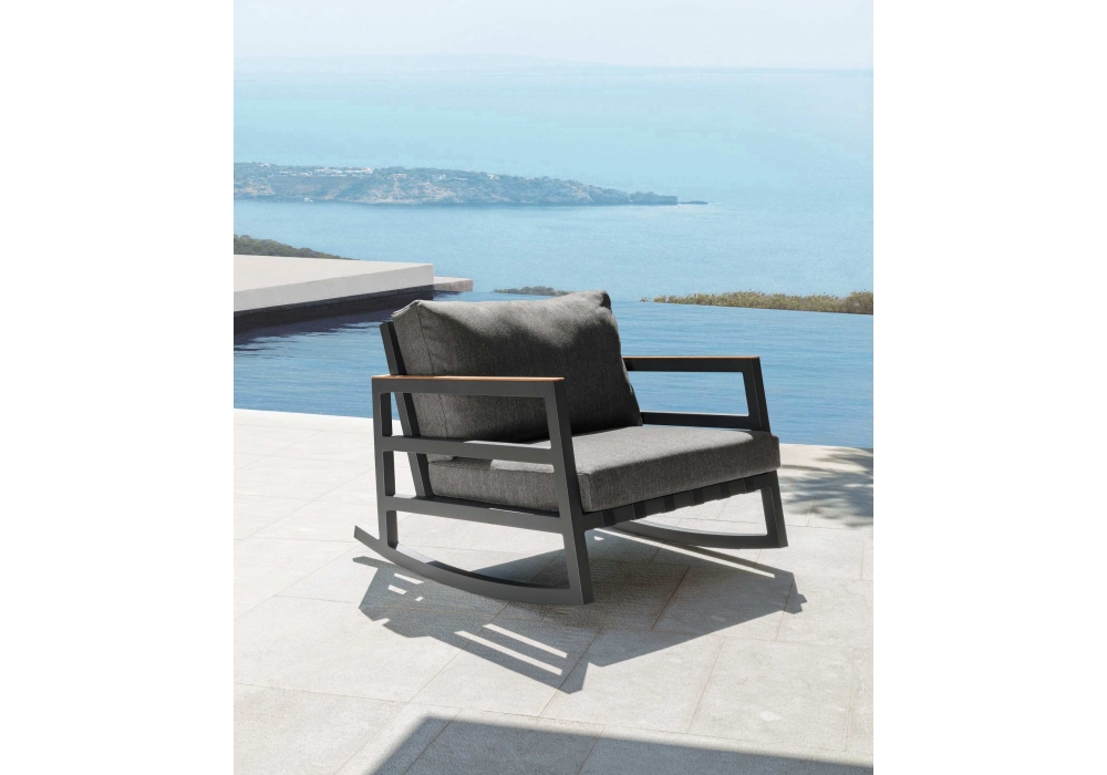 Alabama Alu es un Mecedora diseñado por Marco Acerbis para Talenti. Estructura de aluminio con recubrimiento en polvo. El asiento y el respaldo tienen un soporte de correas elásticas sintéticas, con una tira de teca en la parte superior. Los cojines son de tela, removibles, fáciles de lavar y resistentes a los agentes atmosféricos.