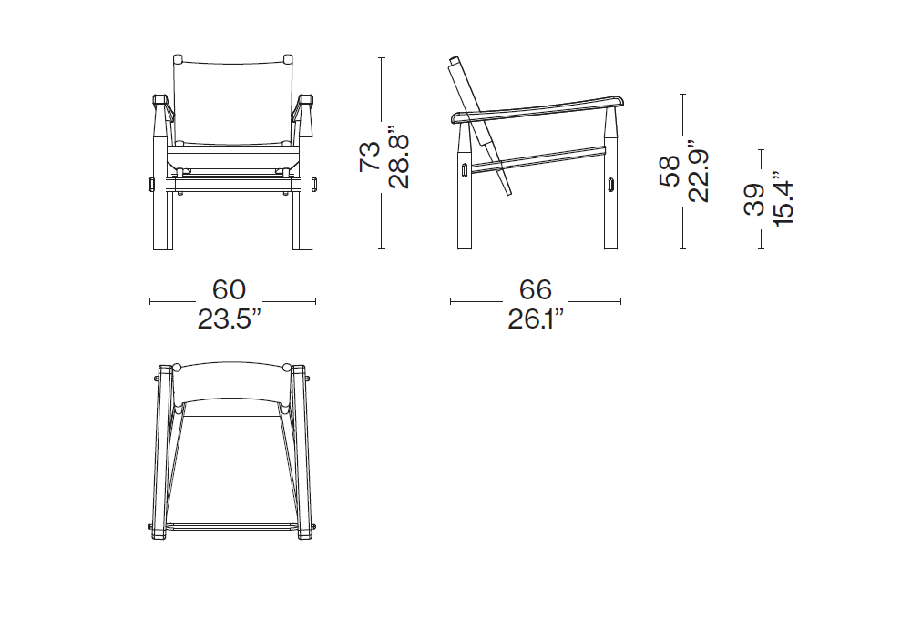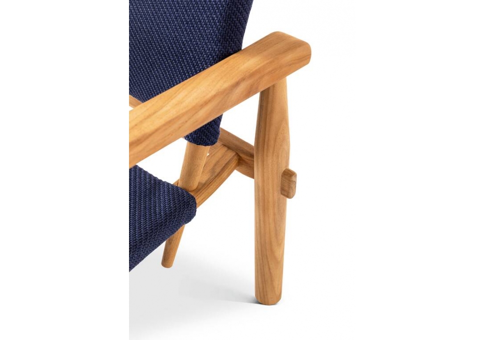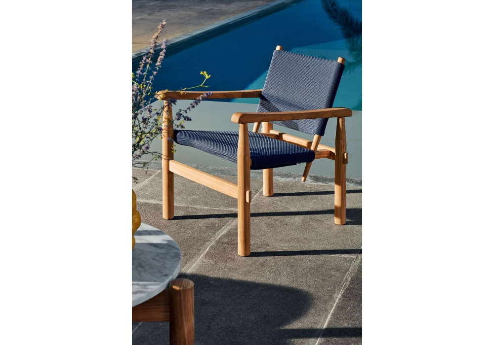 Doron Hotel Outdoor diseñado por Charlotte Perriand para Cassina es un sillón con estructura de madera maciza de teca, acabado natural. Acolchado del asiento en espuma de poliuretano con revestimiento en tejido repelente al agua.