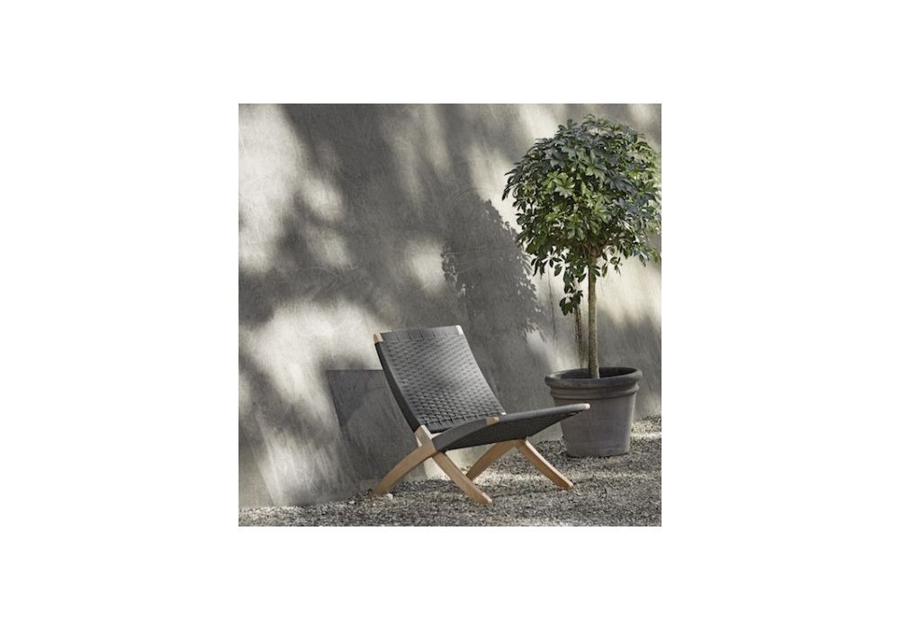 MG501 Cuba Chair Outdoor diseñada por Morten Gøttler para Carl Hansen & Søn es un sillón con estructura de madera maciza, acabado en teca. El asiento y el respaldo en una cuerda trenzada al aire libre, disponible en varios colores.