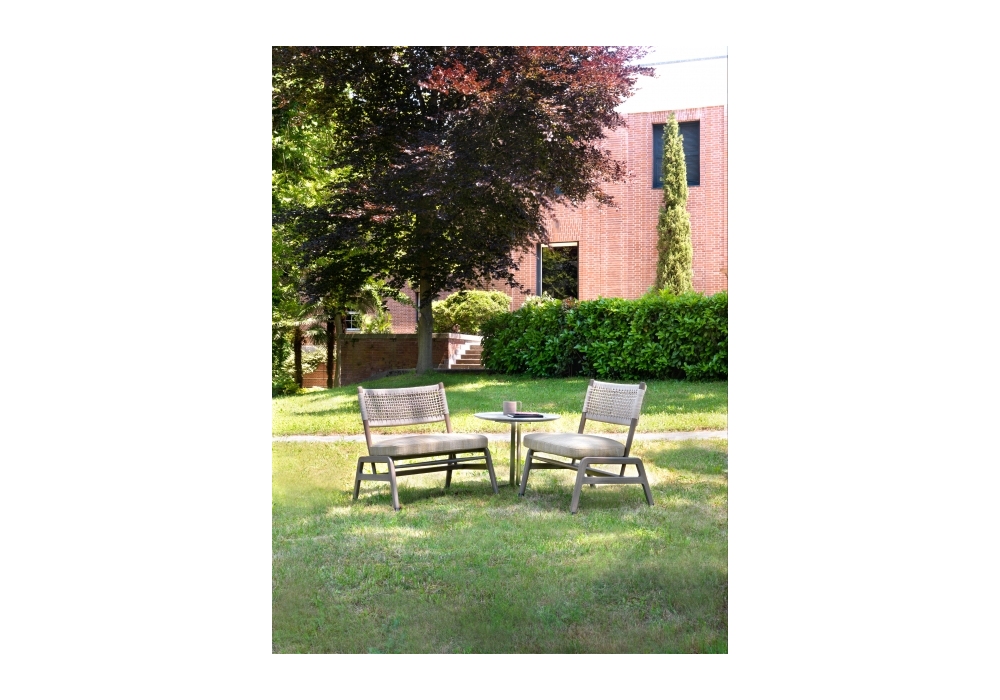 Ortigia Outdoor diseñada por Flexform es un sillón de la colección Outdoor. Respaldo realizado en polipropileno entretejido. Estructura de madera maciza de iroko en diferentes acabados. Cojín del asiento tapizado en espuma de poliuretano y revestimiento de tela repelente al agua.