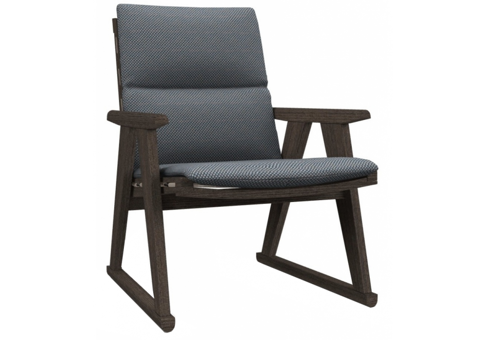 Gio diseñada por Antonio Citterio para B&B Italia Outdoor es una butaca con estructura en madera maciza de teca antique grey, correas en polipropileno color tortora. Tapizado en poliuretano perfilado de diferente densidad y revestimiento en tejido.