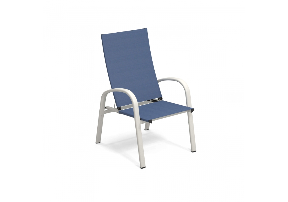 Holly diseñado por EMU es un silla reclinable en acero, la estructura de aluminio le da al producto una muy alta resistencia a los agentes atmosféricos, la humedad y la sal. Disponible en diferentes acabados.