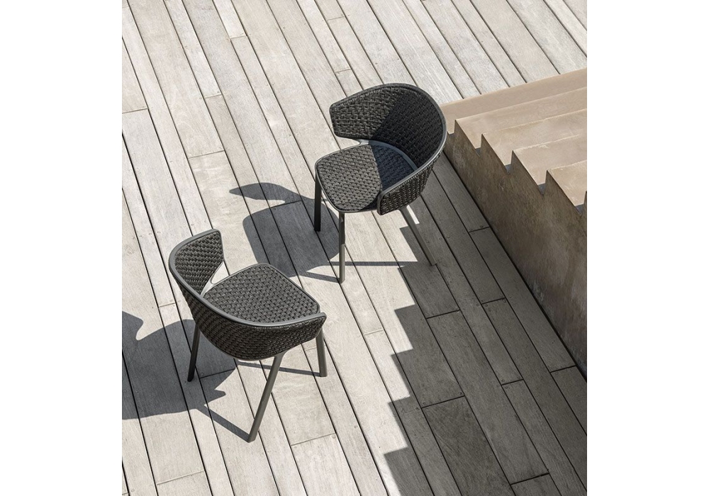 Pluvia Rope diseñada por Luca Nichetto para Ethimo es una butaca con estructura portante en aluminio pintado en acabado blanco cálido. El asiento y el respaldo están cubiertos con una cuerda de tejido cerrado. Pluvia está disponible en diferentes acabados.