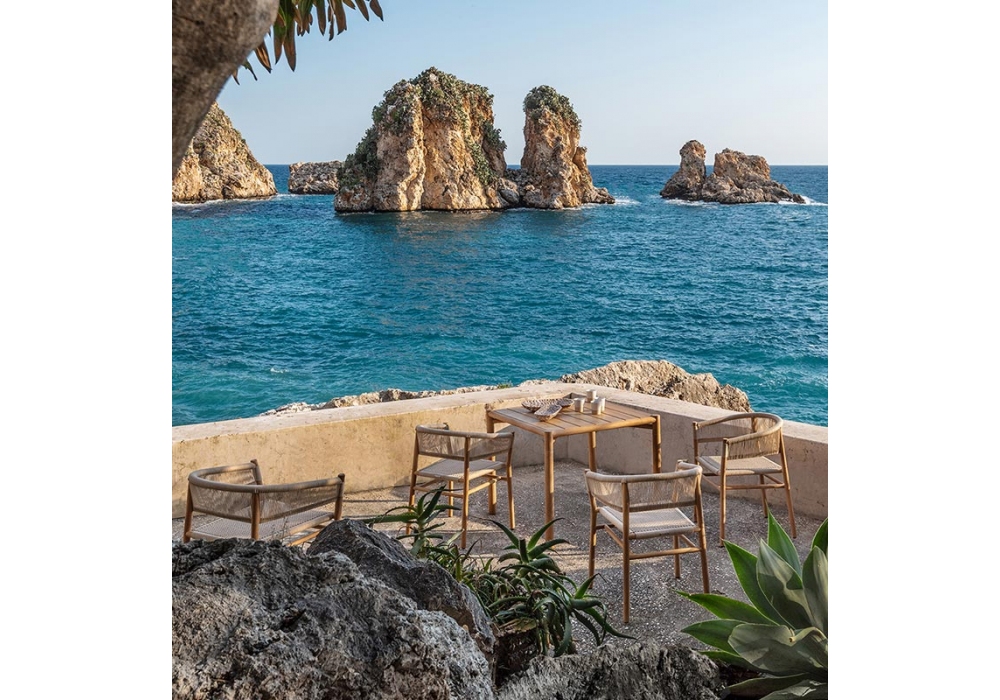 Kilt Teak diseñado por Marcello Ziliani para Ethimo es un sillón con estructura portante en madera de teca. El asiento y el respaldo están cubiertos con un tejido de cuerda. Kilt Teak está disponible en diferentes acabados.