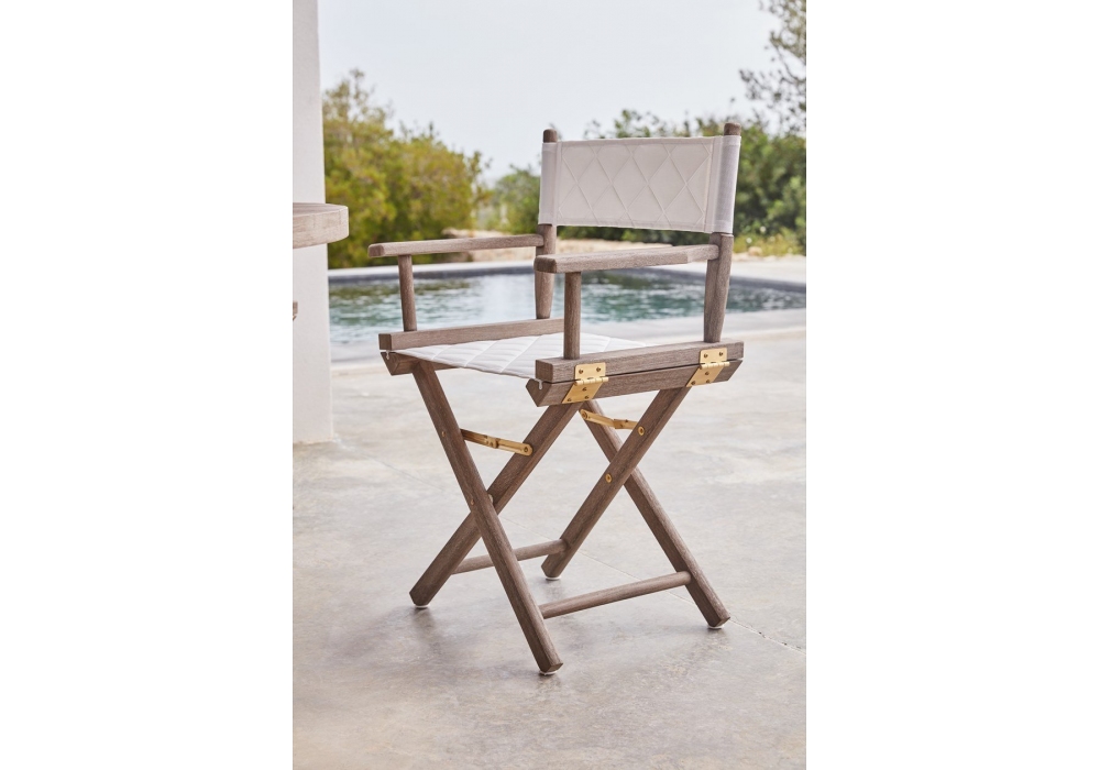 Chelsea producido y diseñado por Unopiù es un sillón plegable con estructura de teca natural revestida de canatex beige o texitileno blanco. Los cojines del asiento son de algodón en diferentes acabados.