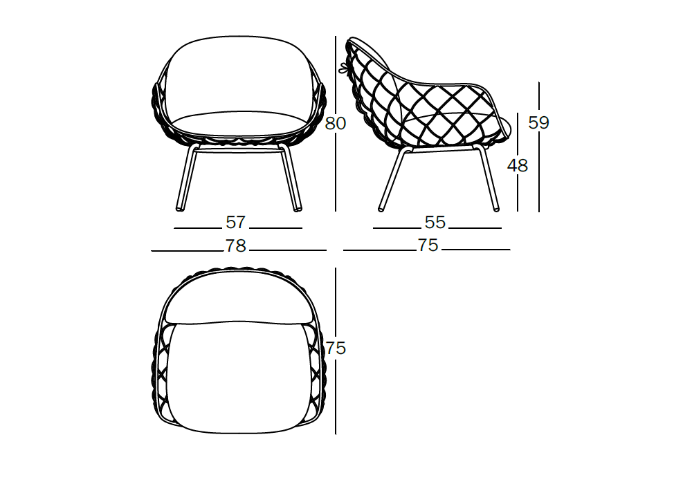 Piña diseñada por Jaime Hayón para Magis es una sillón apta también para exterior con estructura y carcasa en acero pintado y cojín asiento/respaldo en espuma de poliuretano revestida en tejido en diferentes acabados. Posibilidad de añadir un cojín lumbar.