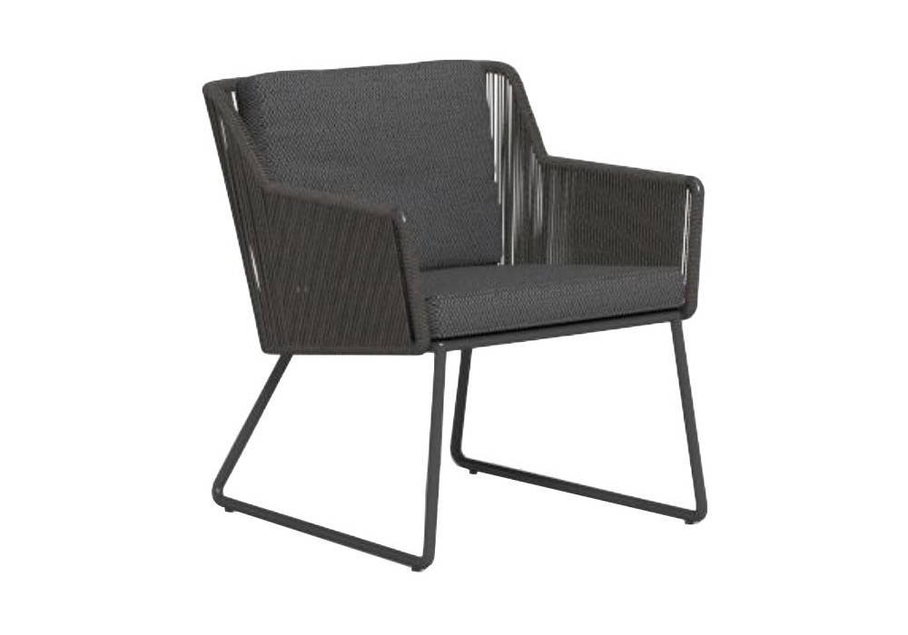 Coral diseñado por Marco Acerbis para Talenti es un sillón de exterior con estructura de aluminio. Respaldo y reposabrazos revestidos con tejido de cuerda sintética. Los cojines tienen fundas removibles y están tapizados en telas para exteriores resistentes a la intemperie.