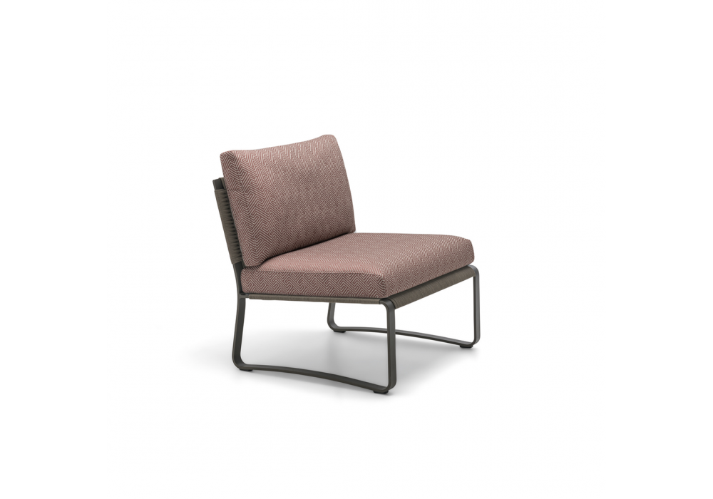 Phoenix diseñada por Vincent Van Duysen para Molteni&C es una butaca realizada con estructura de metal bruñido, asiento y respaldo con cuerda tejida. Cojines acolchados con tapicería de tela. Disponible con o sin reposabrazos.