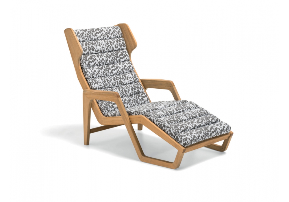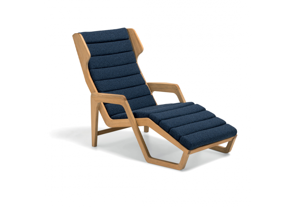 D.150.5 diseñada por Gio Ponti para Molteni&C es una chaise longue realizada con estructura de madera maciza de teca en acabado natural, puntas de apoyo en material plástico y tapizado en tejido.