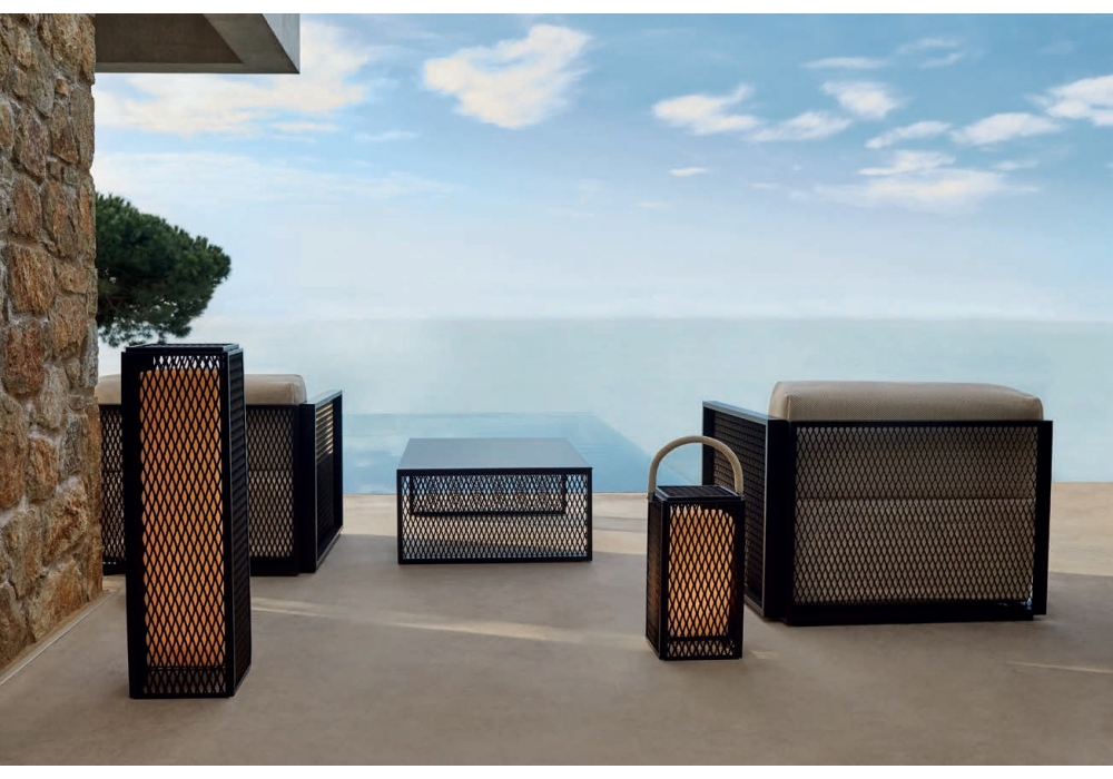 The Factory diseñada por Ramón Esteve para Vondom es una butaca realizada con estructura de aluminio y cojines acolchados con tapizado en tela. Esta colección es adecuada para uso en interiores y exteriores.