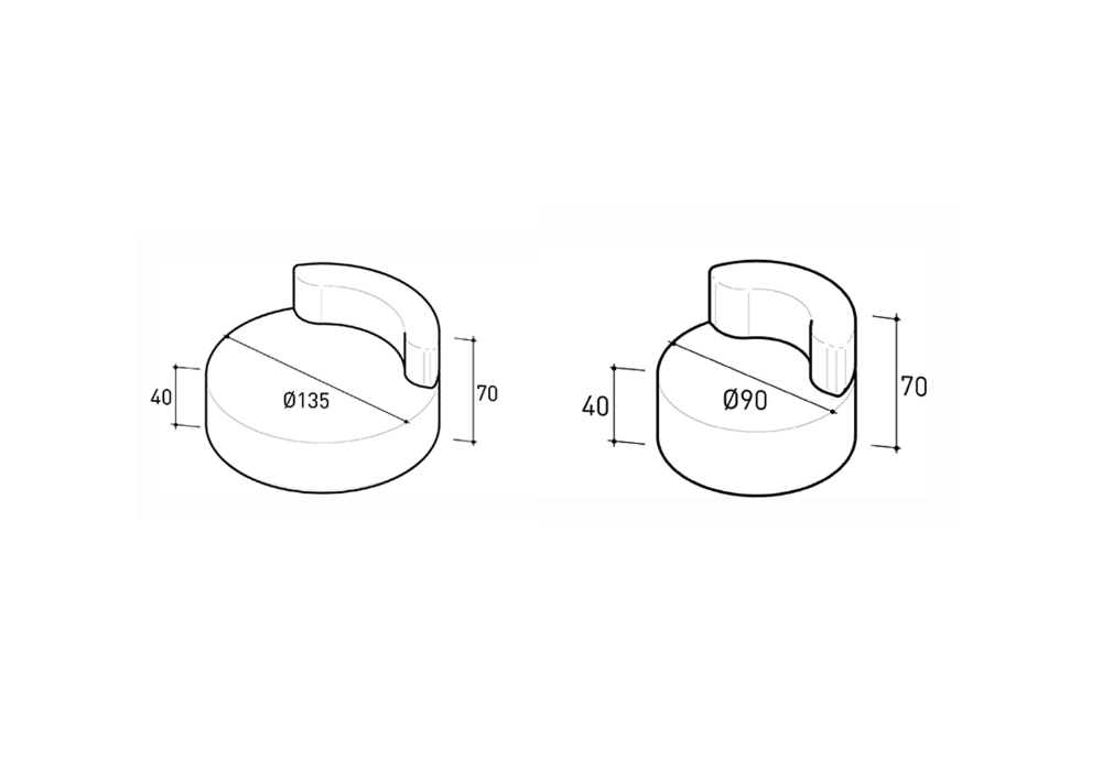 | Dimensiones | - Ø 90 x H 70 cm; - Ø 135 x H 70 cm. |