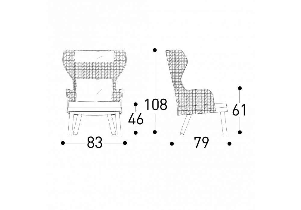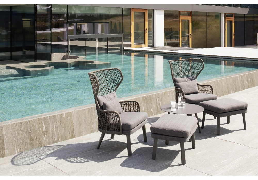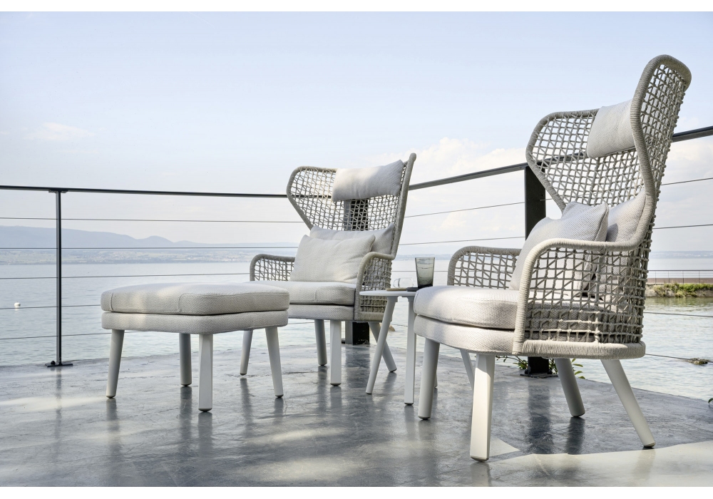 Emma diseñada por Monica Armani para Varaschin es una bergere de exterior con patas en aluminio o iroko macizo. Asiento tapizado en tela con estructura de asiento en polipropileno. Respaldos con marcos entrelazados de aluminio pintado en polvo o de madera contrachapada para exteriores y revestidos de tela. Disponible en diferentes acabados.