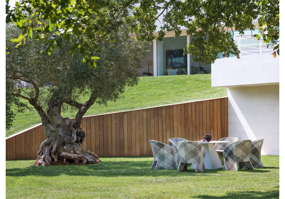 Maat diseñada por Philippe Bestenheider para Varaschin es una butaca tejida a mano en fibra sintética con estructura en aluminio con recubrimiento en polvo. Disponible en diferentes acabados.