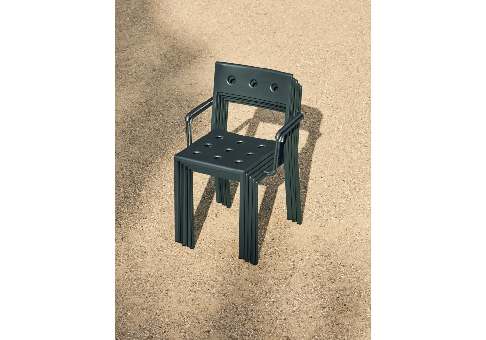 Balcony diseñads por Ronan & Erwan Bourrollec para Hay es una butaca de exterior realizads en acero pintado en polvo con revestimiento de dos componentes; una imprimación exterior y una capa de polvo que proporciona una barrera a los elementos corrosivos, haciéndolo adecuado para uso en exteriores. Disponible en diferentes acabados. A petición es posible añadir un cojín de asiento.