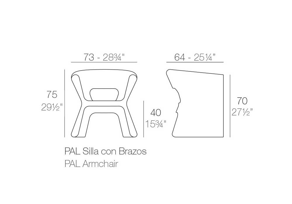 Pal diseñado por Karim Rashid para Vondom es un sillón realizado en resina de polietileno con acabado lacado mate o brillante. Disponible en diferentes acabados. Cojín de asiento bajo pedido.