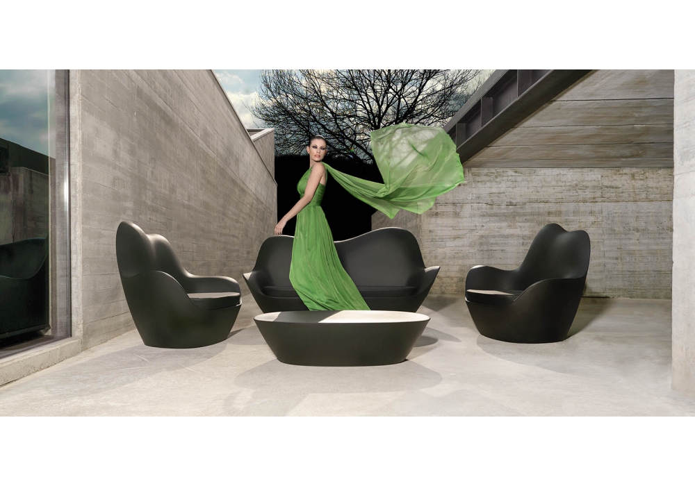 Sabinas diseñada por Javier Mariscal para Vondom es una butaca realizada en resina de polietileno por rotomoldeo y asiento en tejido. 100% reciclable. Artículo adecuado para uso en interiores y exteriores. Disponible en diferentes acabados.