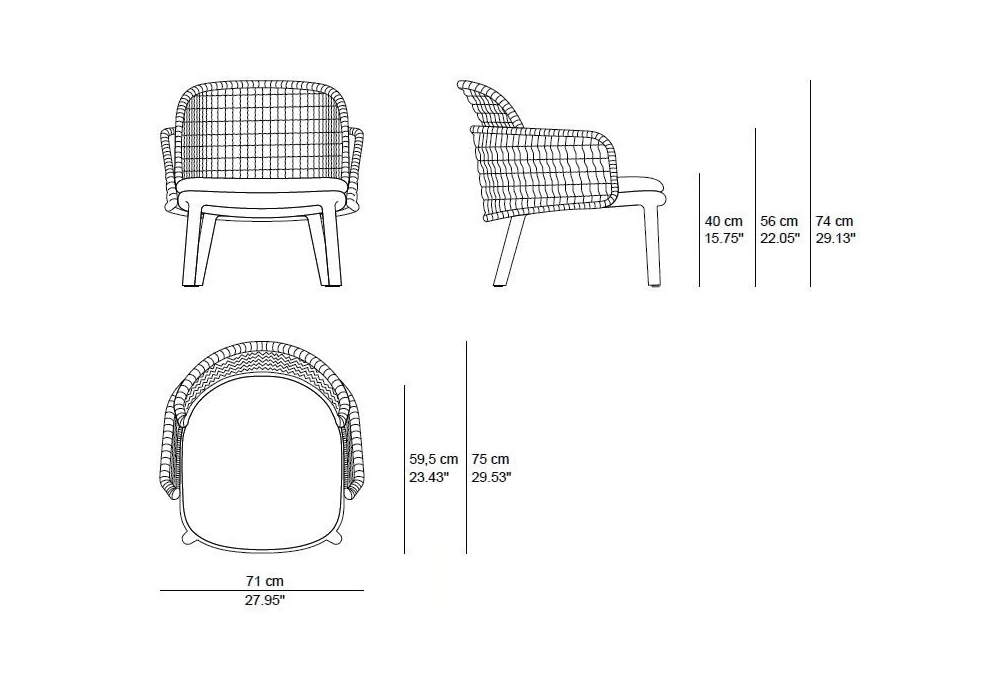 Suro diseñada por Christophe Delcourt para Tribù es una sillón de exterior con brazos con estructura íntegramente realizada en aluminio pintado color arcilla o en madera de teca. El respaldo está íntegramente tapizado con tejido de lino o cuerda de cáñamo. El asiento está adornado con cojines tapizados en tela. Suro está disponible en diferentes acabados.