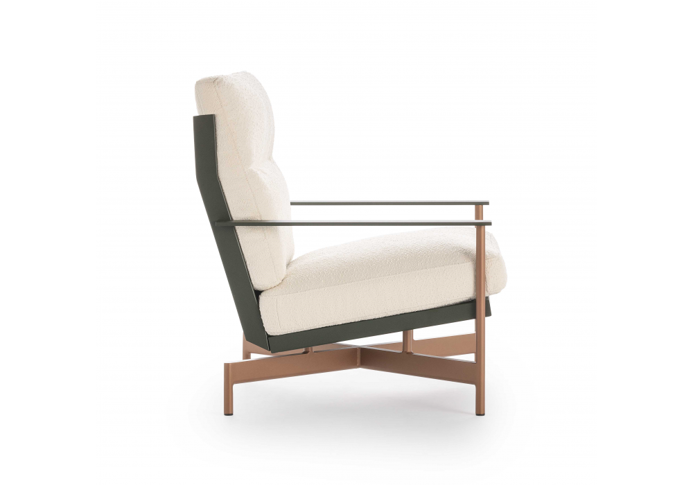 Onde Club diseñado por Luca Nichetto para Gandia Blasco es un sillón realizado en aluminio pintado en polvo con chapa ondulada. Asiento y respaldo de goma de poliuretano reutilizable y fibra de poliéster con tejido hidrófugo. Disponible en diferentes acabados.