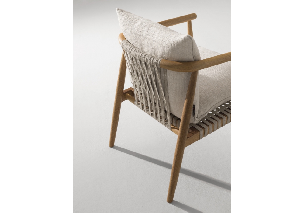 Karin, diseñada por Setsu & Shinobu Ito para Désirée, es una butaquita de exterior que reinterpreta la colección de interior en clave outdoor. La estructura de madera de iroko se integra con el trenzado artesanal del asiento y el respaldo, creando un diálogo armonioso entre materiales y trabajo artesanal. Las formas suaves y la ligereza del conjunto definen un confort natural y relajado. La colección incluye sillón, butaquita y sofá, formando un sistema de mobiliario flexible y coherente.