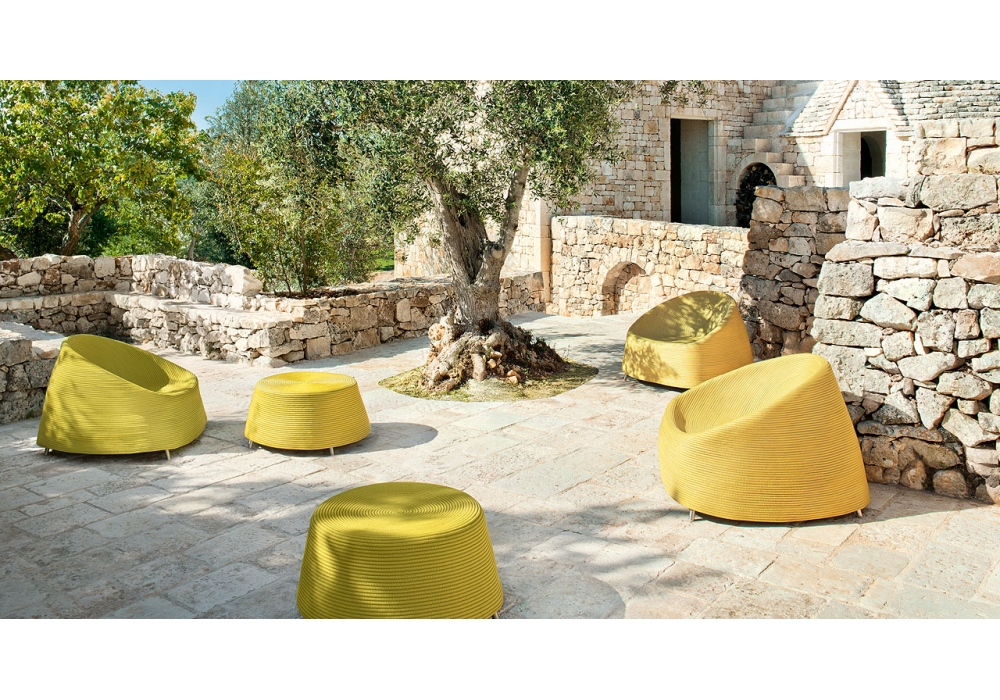 Afra diseñada por Francesco Rota para Paola Lenti es una butaca para exterior, con tapizado desenfundable disponible en diferentes colores. Disponible en dos modelos.