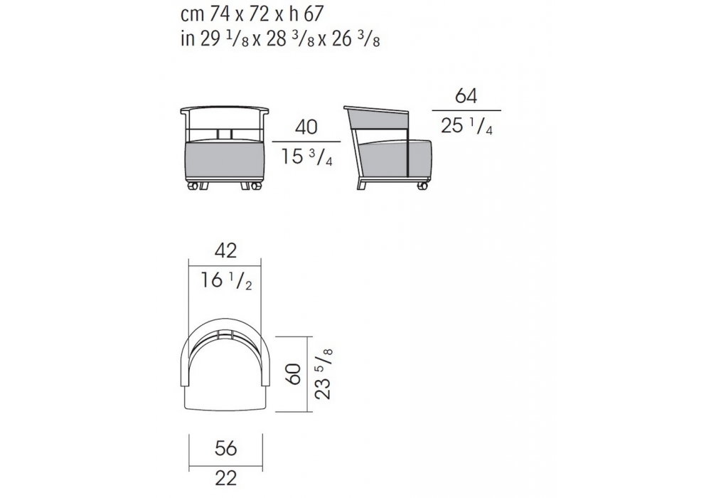 Lady diseñada por Umberto Asnago para Giorgetti es un sillón con estructura en contrachapado de abedul y metal pintado en color bronce con efecto natural. La base es de nogal canaletto macizo, equipada con ruedas en la parte delantera. La tapicería está disponible en tejido o piel, disponible en la versión monocolor o bicolor (parte exterior en piel, parte interior en tejido o piel).