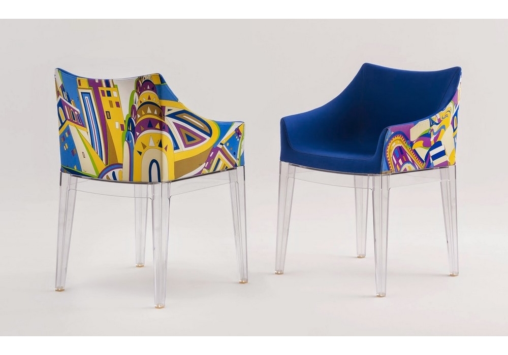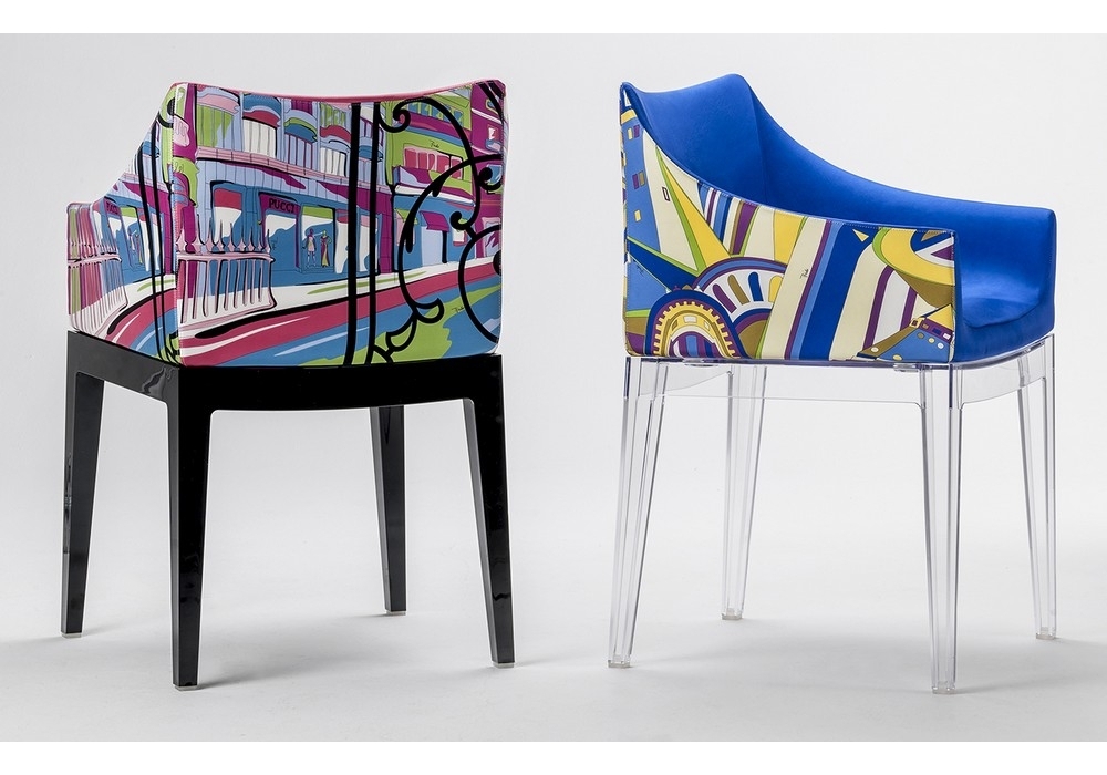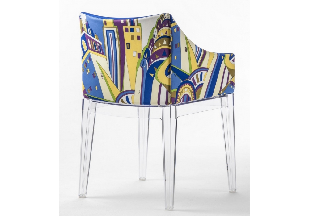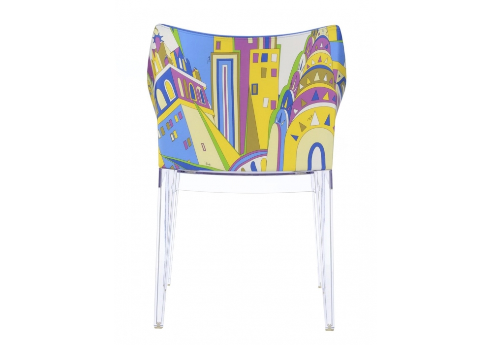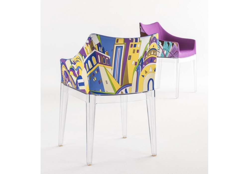 Madame - World of Emilio Pucci diseñada por Philippe Starck para Kartell es un sillón realizada con estructura en policarbonato transparente o teñido en masa y asiento en poliuretano tapizado en tejido.