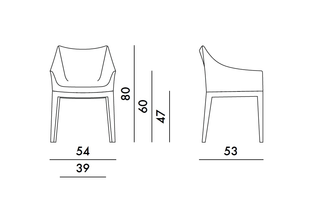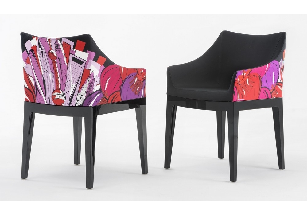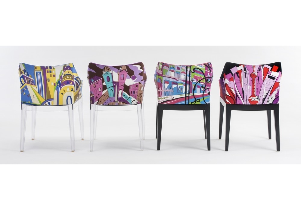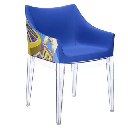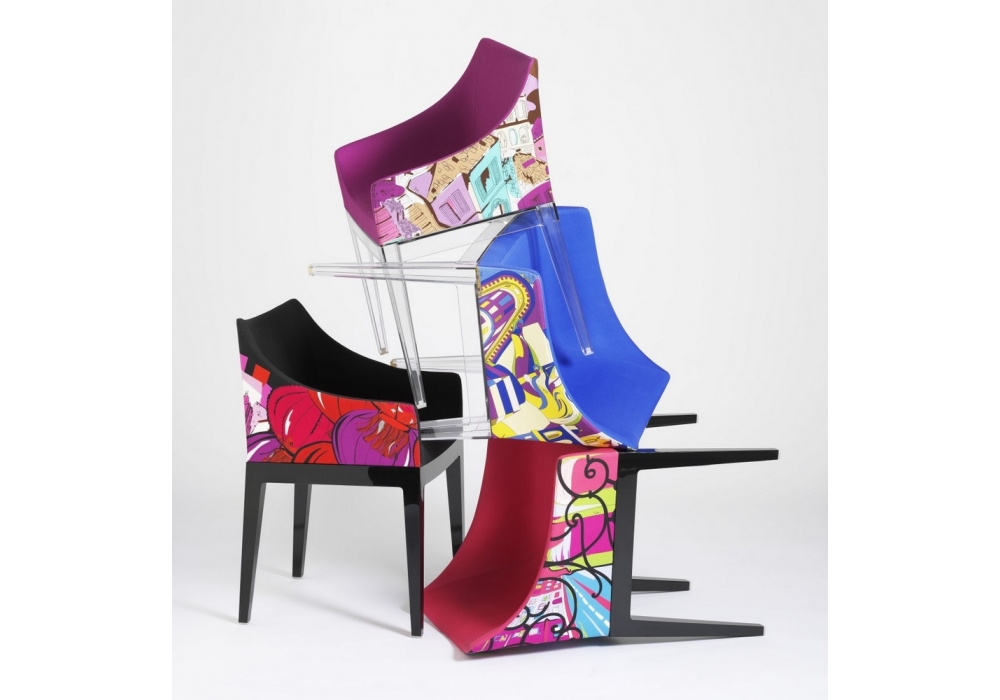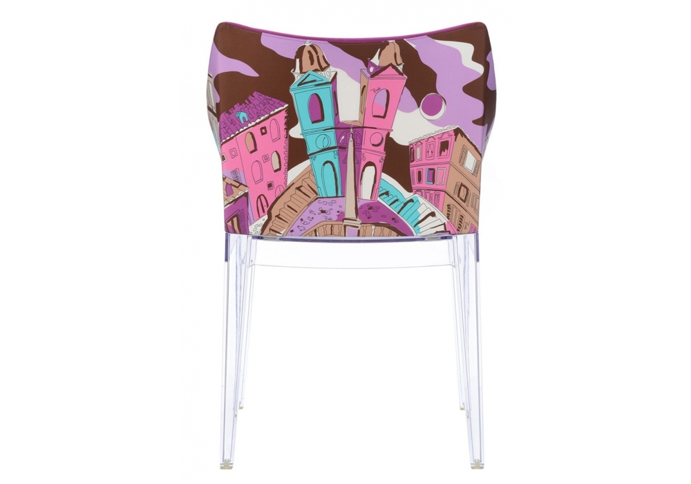 Madame - World of Emilio Pucci diseñada por Philippe Starck para Kartell es un sillón realizada con estructura en policarbonato transparente o teñido en masa y asiento en poliuretano tapizado en tejido.