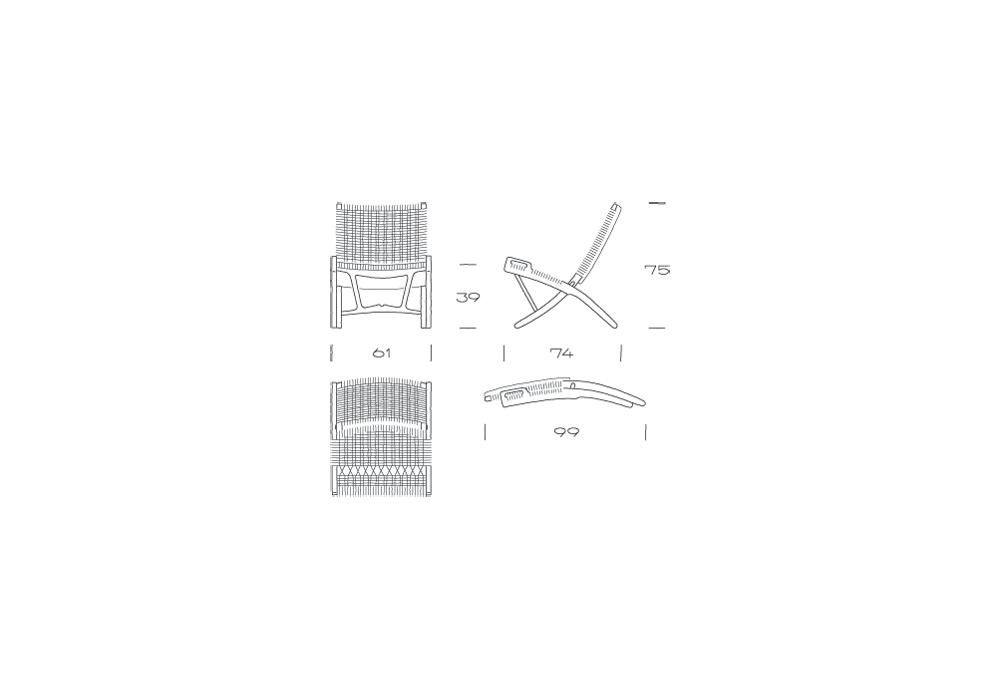 PP512 Folding Chair designed by Hans J. Wegner for PP Møbler is an easy chair with seat in nature cane. PP512 is perfect as a low livingroom chair or for the terrace or summer house. The Folding Chair appears quite straightforward and elegant in use and thus offers a tangible experience of quality materials. However, when hanging neatly folded on the wall it becomes a breathtaking piece of art.