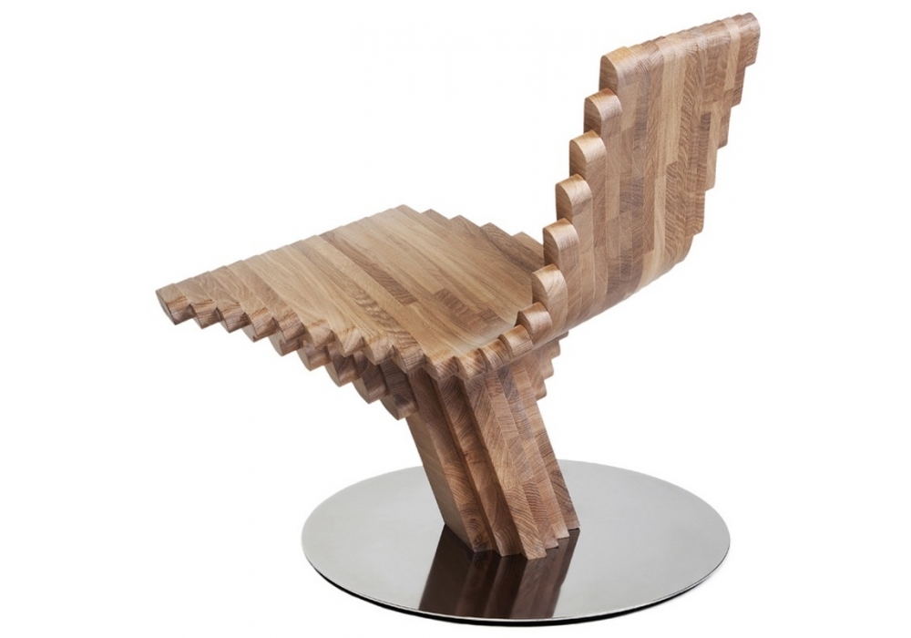 Twist diseñado por Toni Grilo para Haymann es un sillón. Sillón de roble macizo hecho de porras pegadas. Base de acero inoxidable. Disponible en roble teñido natural o negro.